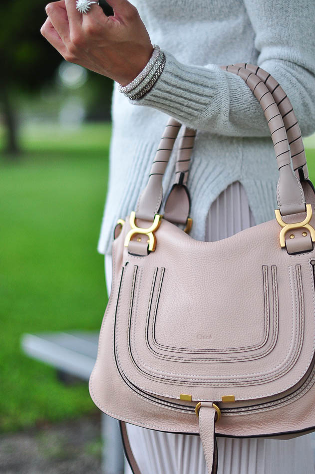 Sweater: Lou & Grey (sold out, similar here, here, and here) // Skirt: Zara (old, similar here and here) // Pumps: Madewell (loving the Rose color and another option here) // Bag: Chloe // Bracelets: Lily and Laura // Ring: Swarovski