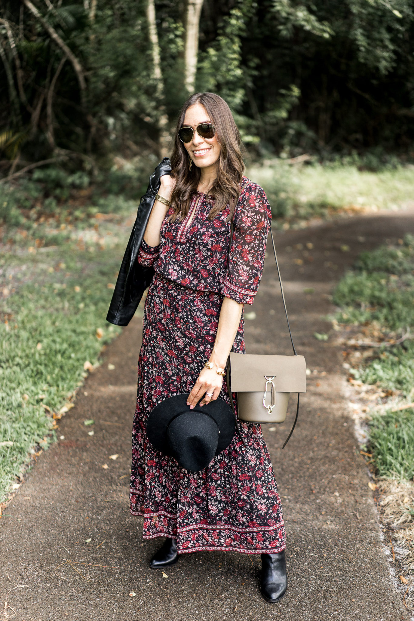 Outfit 2: Dress: Joie c/o Rent the Runway // Leather Jacket: Maje (similar here and here) // Boots: M.Gemi (old, these are the new version) // Bangle: Julie Vos // Bag: Zac Zac Posen (mini version here) // Hat: Rag and Bone