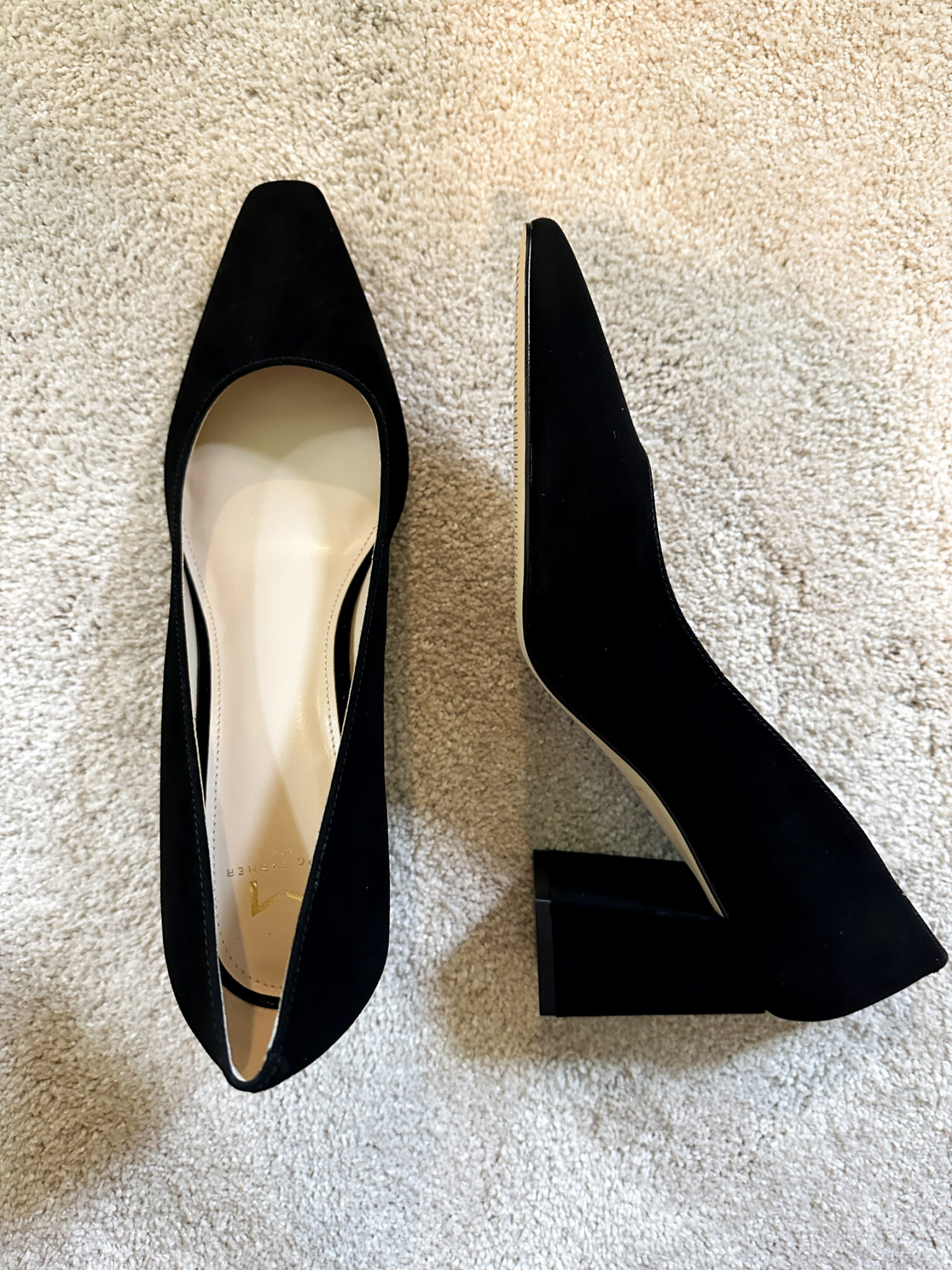 When it comes to high heels, I grabbed two pairs in the 2023 #nsale. The first are the Marc Fisher Varla block heel pumps which feature a pointed square toe and a modest heel height. Like all other shoes I’ve owned by the brand, you can wear these directly out of the box with no need to break them in. They are insanely comfortable and come in six colors for $89.