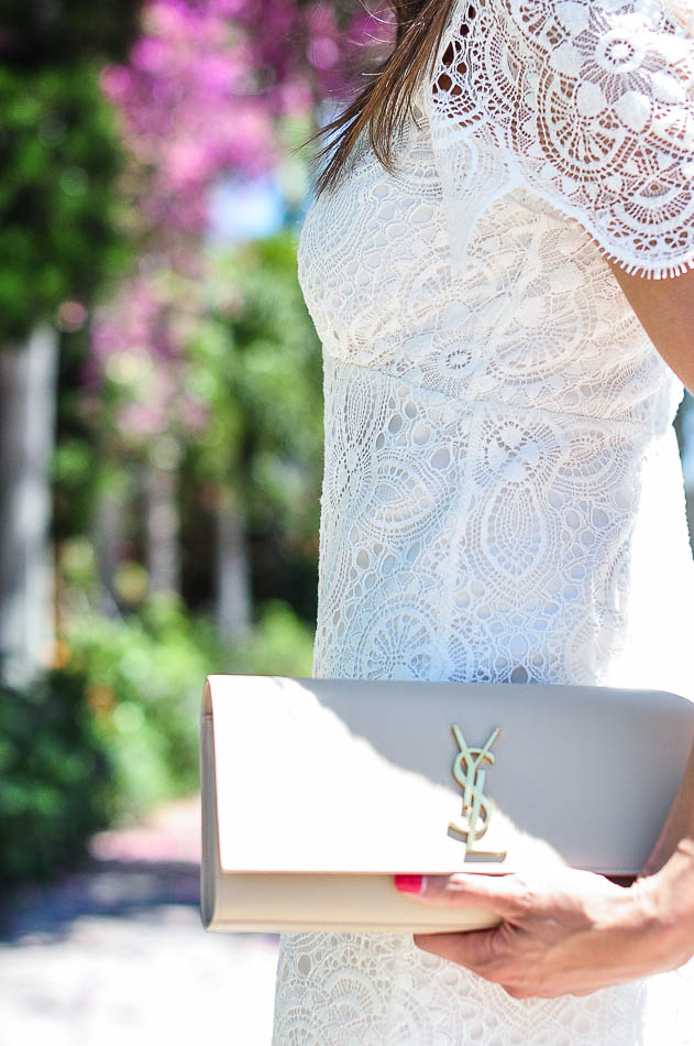 You can never go wrong with neutral accessories. So, to keep the look classic and soft, I paired it with nude strappy sandals and my favorite YSL clutch. The weather here in Florida has definitely gotten hot, so I didn’t bring a jacket. But, this light pom pomp scarf would have been a great addition.