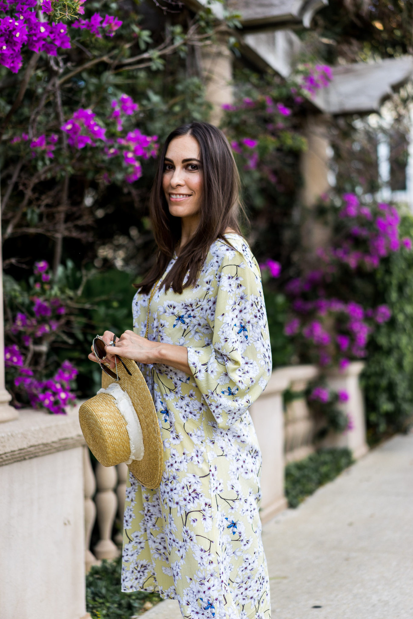 Although I tend to wear a lot of neutrals, when Spring rolls around I am all about a great printed dress. Today H&M launched a stunning capsule collection with London-based artist, Anna Glover, and it is everything you need in your closet for the season. I’m partnering with H&M to style two of my favorite printed dresses – this light yellow textured dress and this botanical patterned dress. Of course, there are more than just pretty frocks! The full H&M Anna Glover collection includes jumpsuits, tops, trousers, shorts and skirts that are all in lightweight fabrics like linen and cotton.