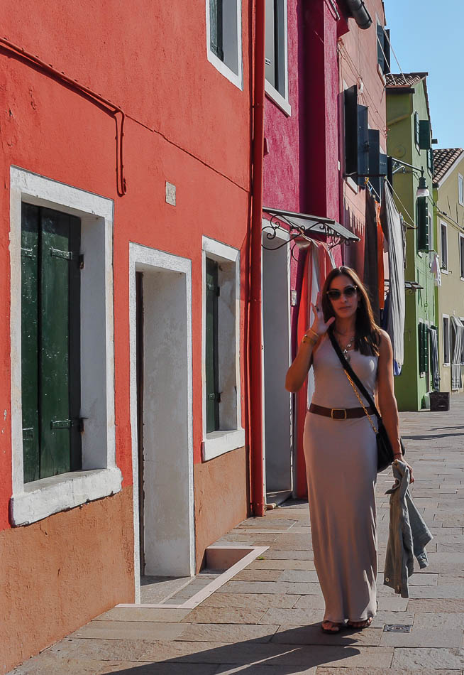 Burano colorful houses in ItalyColorful houses in Burano and Splendid Maxi Dress