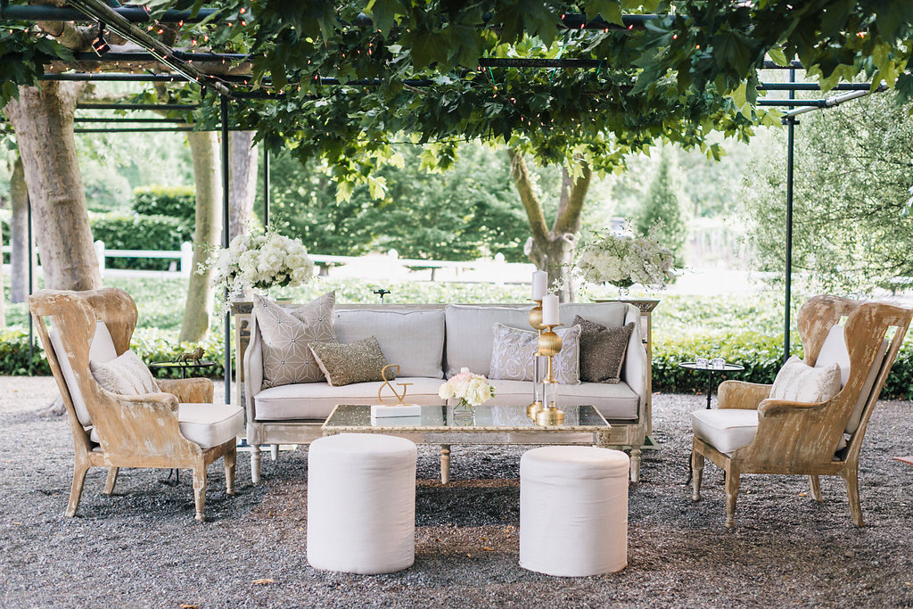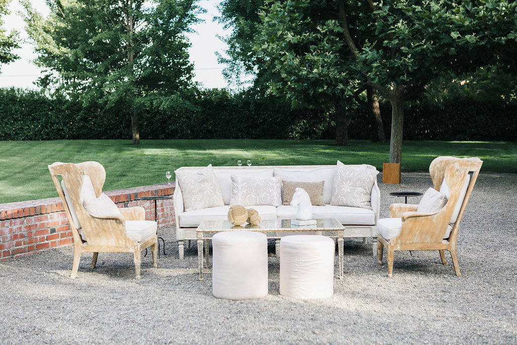 We were purposely thoughtful about extra seating areas for our guests. We prepared a gorgeous lounge near the fireplace under the arbor and re-purposed our ceremony pedestals and florals behind it. Then, the week of the wedding we decided to add a second lounge by the dance floor. In the end, the dance floor lounge was the most used!